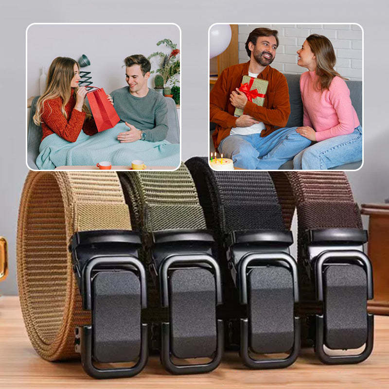 QUICK-RELEASE METAL BUCKLE: Featuring a robust quick-release buckle, this belt can be easily fastened or removed in seconds.The metal buckle is treated with a corrosion-resistant coating