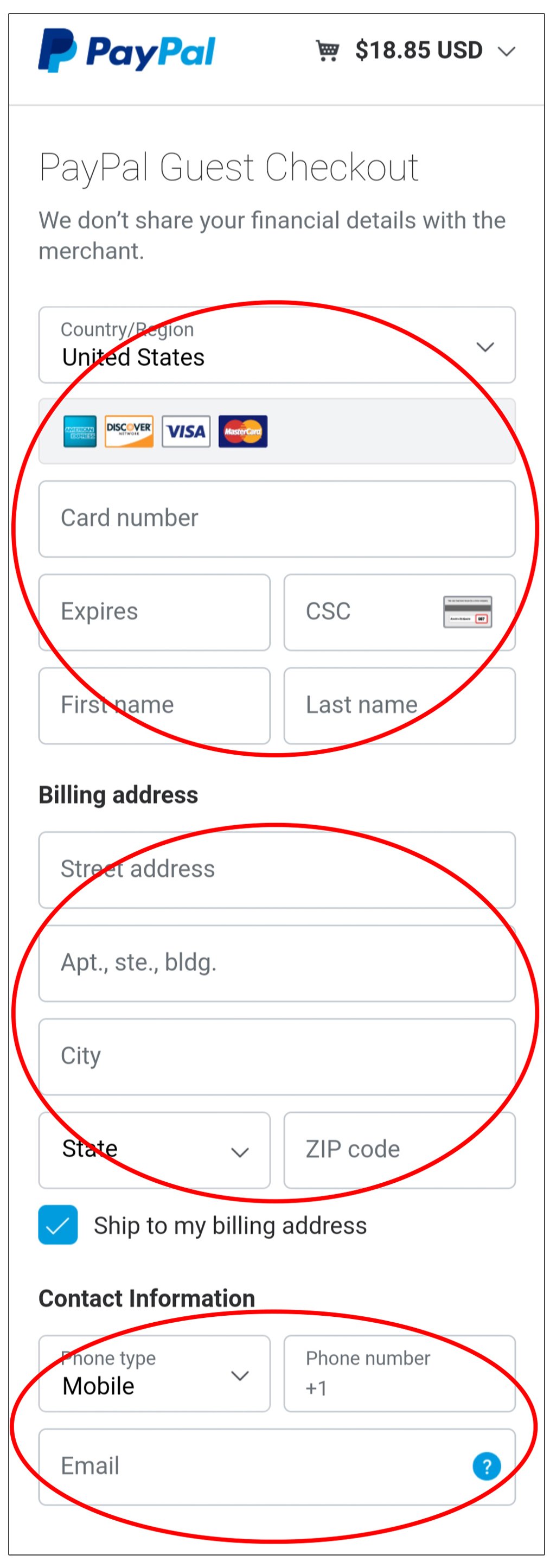 Enter your Payment details, your Billing Address , and your Contact Information .