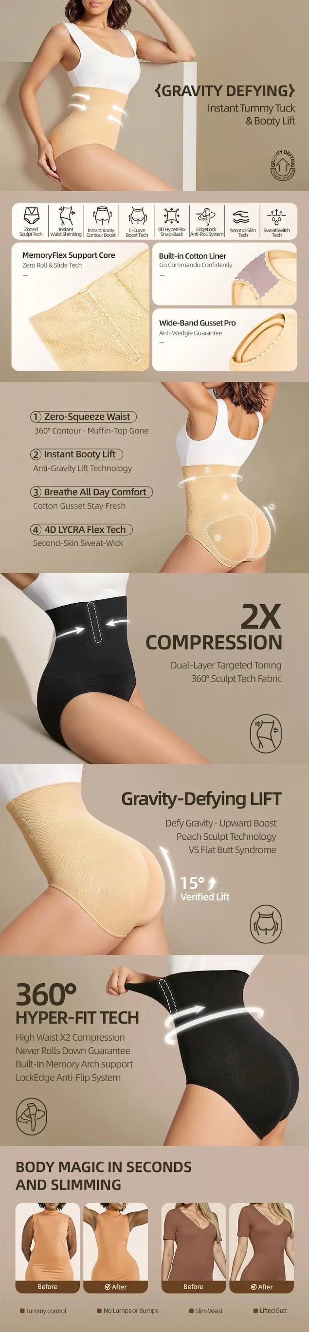 No more rolling up or down! With 4 built-in spiral steel bones and a widened anti-slip waistband, this shapewear stays firmly in place—no matter how much you move. Say goodbye to constant readjustments and hello to all-day confidence.