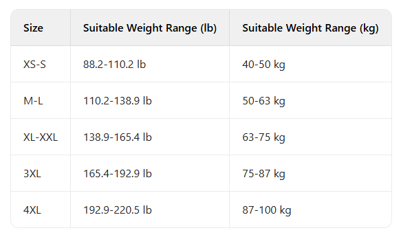 Due to the high elasticity of the fabric, each size can accommodate a range of body shapes.