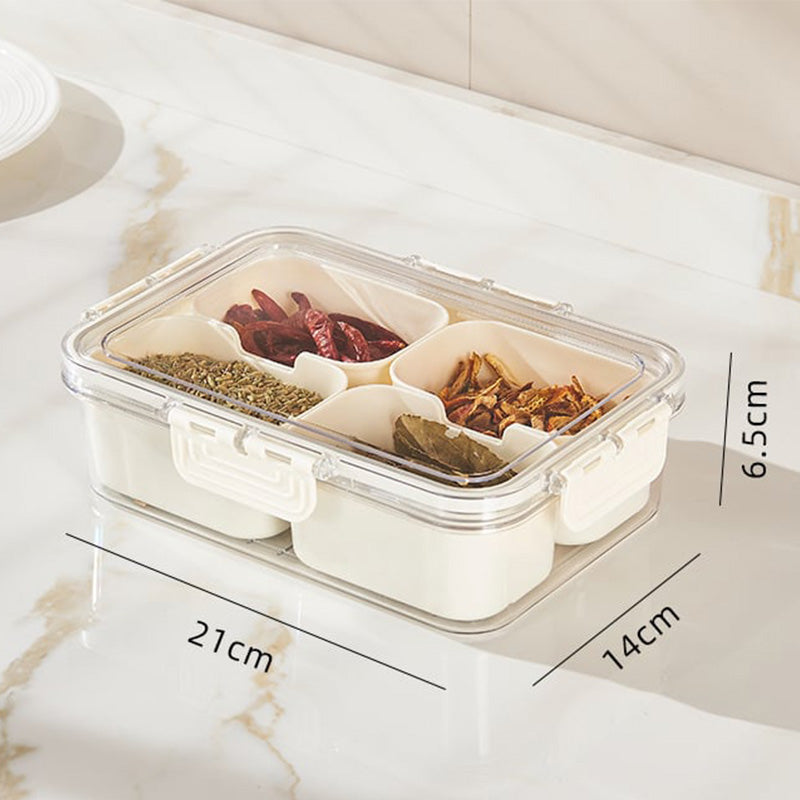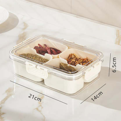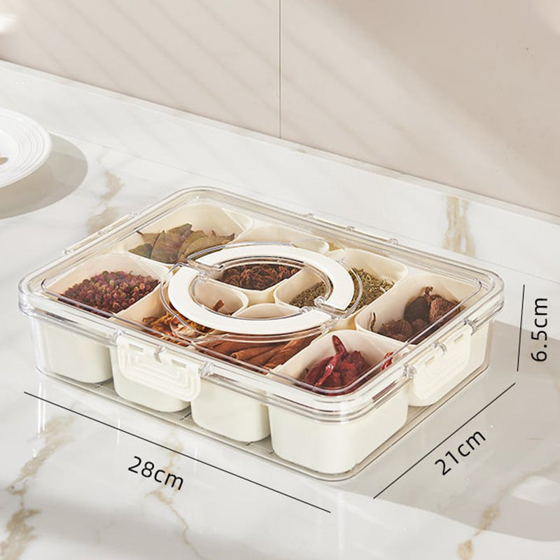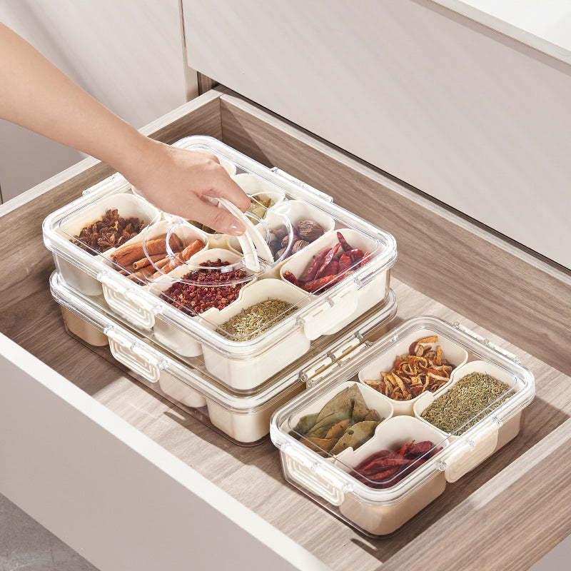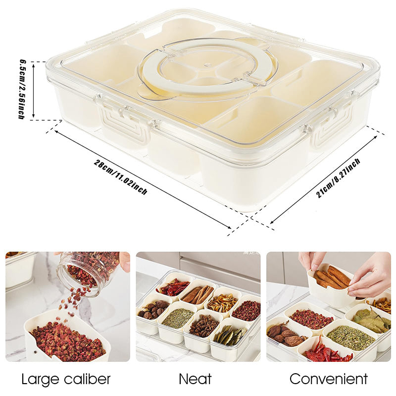 MULTIFUNCTIONAL: This food storage box is suitable for snacks, condiments, dried fruits, appetizers, nuts, ingredients and any other supplies that you need to sort and store, keep your kitchen or countertop clean and tidy, it is your home or versatile food container for travel.