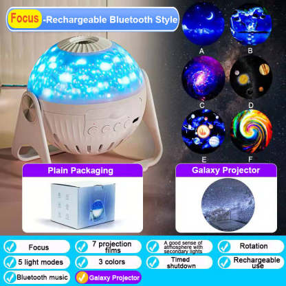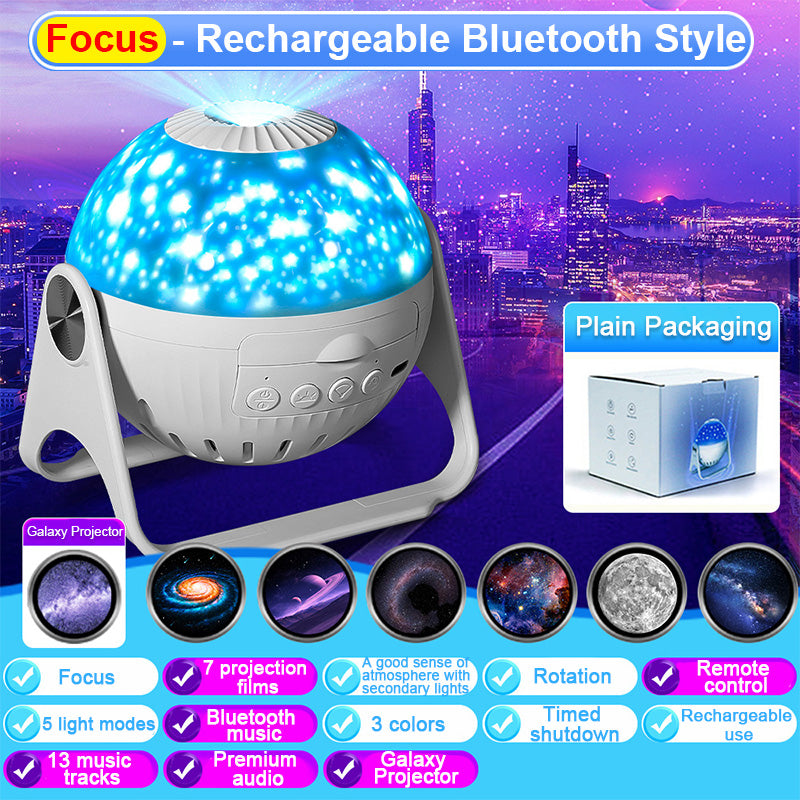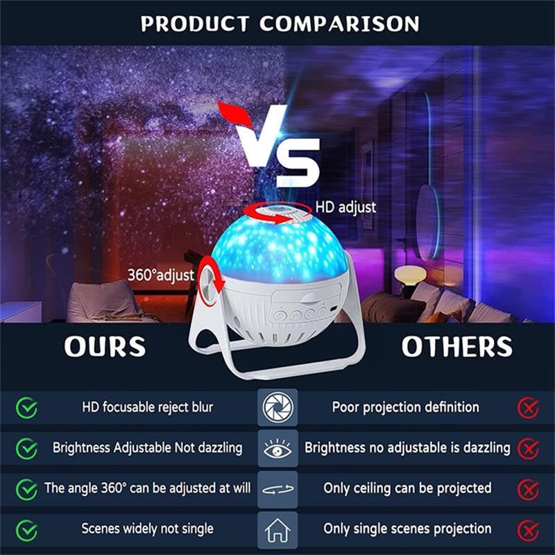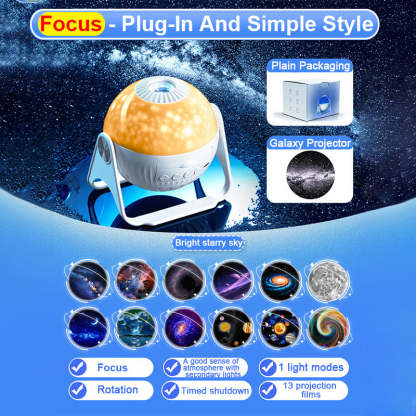 2023 New upgrade HD galaxy planetarium projector. Twist the top screw ring to adjust the focal length to fit the projection distance for clear imaging. Support up to 3M projection distance and 40㎡ projection area. Perfect for decorating rooms. Right rotation to remove the lamp cover, stars sprinkled around the room, bring magic indoors starry light show.